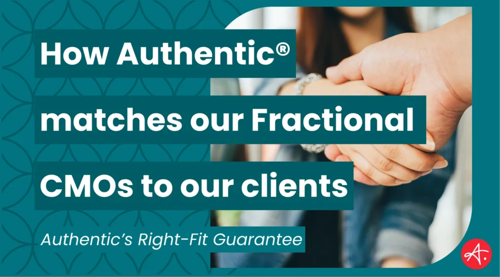 - Culture fit: We dig into your organization’s leadership, values, and personality dynamics to ensure your fractional CMO is a strong culture fit. Culture and values are critical to our own hiring process, so a client whose values complement Authentic’s values is already halfway to finding a strong culture fit. The rest is a matter of matching personality and style.