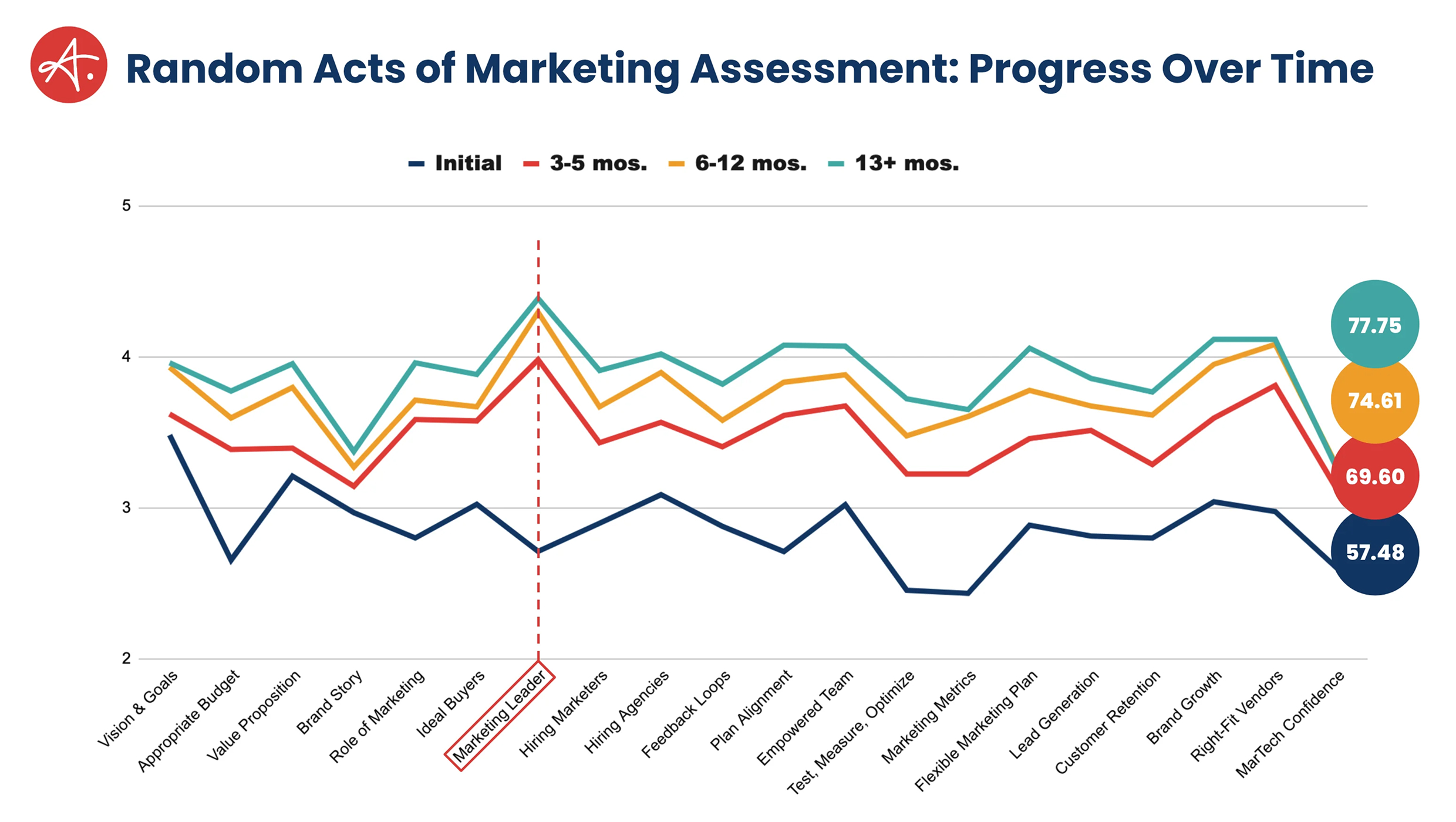 Our data shows that within the first 6–12 months of deploying Authentic Growth®, clients experience a 30–35% increase in marketing maturity. The most immediate and consistent lift is in leadership confidence — specifically, CEOs gain trust that marketing is finally in experienced, accountable hands.